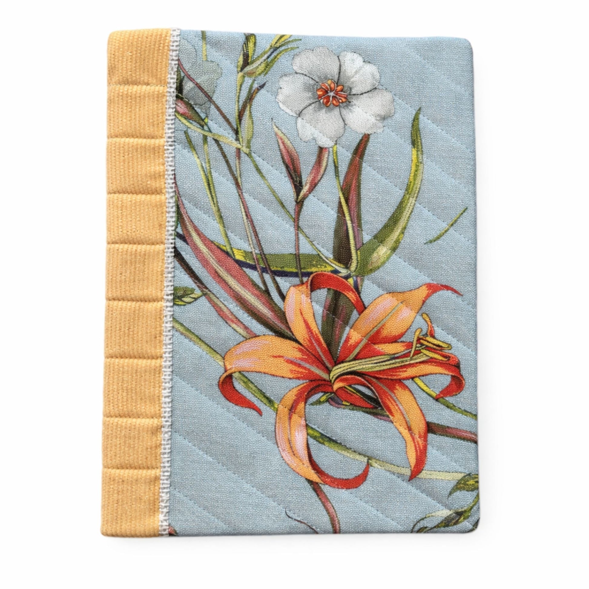 Discover the charm and functionality of our Handmade Apricot Floral Notebook Cover, the perfect gift for journal enthusiasts and creative minds alike. Crafted from sturdy cotton upholstery fabric, this A5-sized notebook cover features a stunning apricot-coloured floral print that captures the essence of elegance and artistry. The spine, constructed from matching apricot-coloured corduroy, adds a touch of classic style while ensuring durability.